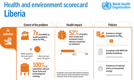 A graphic from the World Health Organization report shows data on Liberia’s air pollution.
